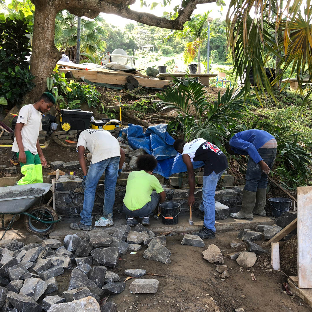 Sur l’invitation de leur professeur M. Nicolas Pierrel, nous sommes allés donner des cours de maçonneries à ses élèves de seconde et terminale au LPPA du ROBERT. A la suite de cela, nous avons réalisé un potager avec deux de ses élèves lors d’un stage à l’entreprise.